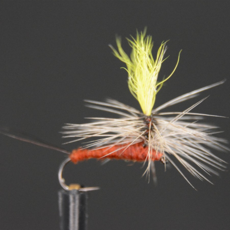 パラシュートフライには、様々なパターンやカラーバリエーションがあります。これらは、特定の昆虫を模倣したものや、特定の環境下での釣果を高めるためのものです。中には、まったく何を模しているのか分からないフライも多く存在します。私も、そんなフライを何度も作ったりテストしたりしていますが、どういう分けか釣れてしまうんですね。何がきっかけでトラウトの食欲を誘うのか謎です。
