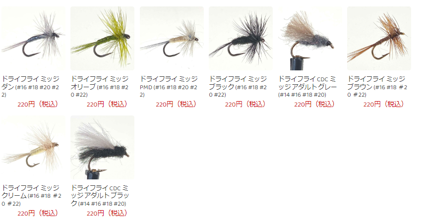 - ダン: 若い水生昆虫を表現するフライで、静かな流れの中で効果的です。