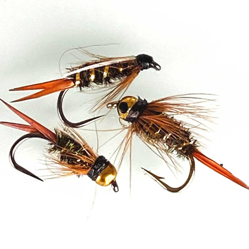 タングステンビーズを使ったプリンスニンフは、通常のゴールドビーズよりも重く、より深い水域に素早く沈むことができます。深場に潜む魚を狙う際に最適です。