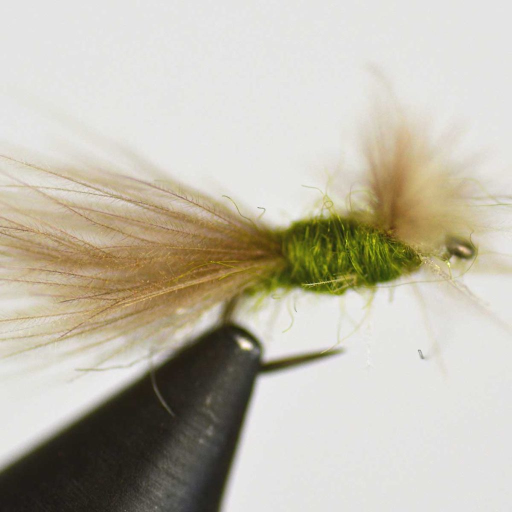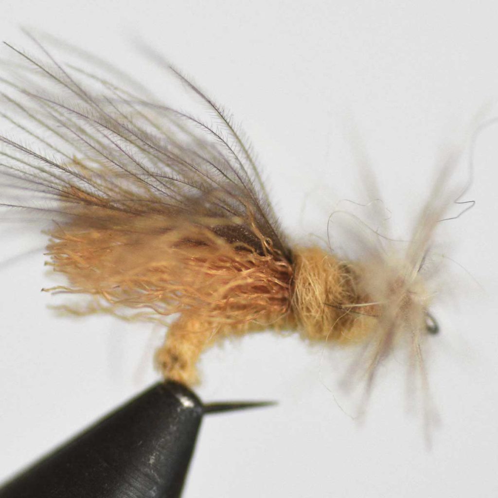 管理釣り場、エリアフィッシングでは小さくてフワフワしているフライが良く釣れます。CDCカディスアダルトは、そんな状況にピッタリなフライの1つです。
