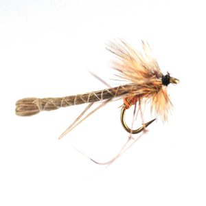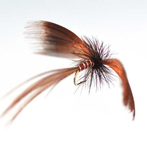 - スピナー(成虫):成熟したメイフライが産卵のために再び水面に降り立ち、寿命を迎えます。スペントパターンがこの状態を模しています。