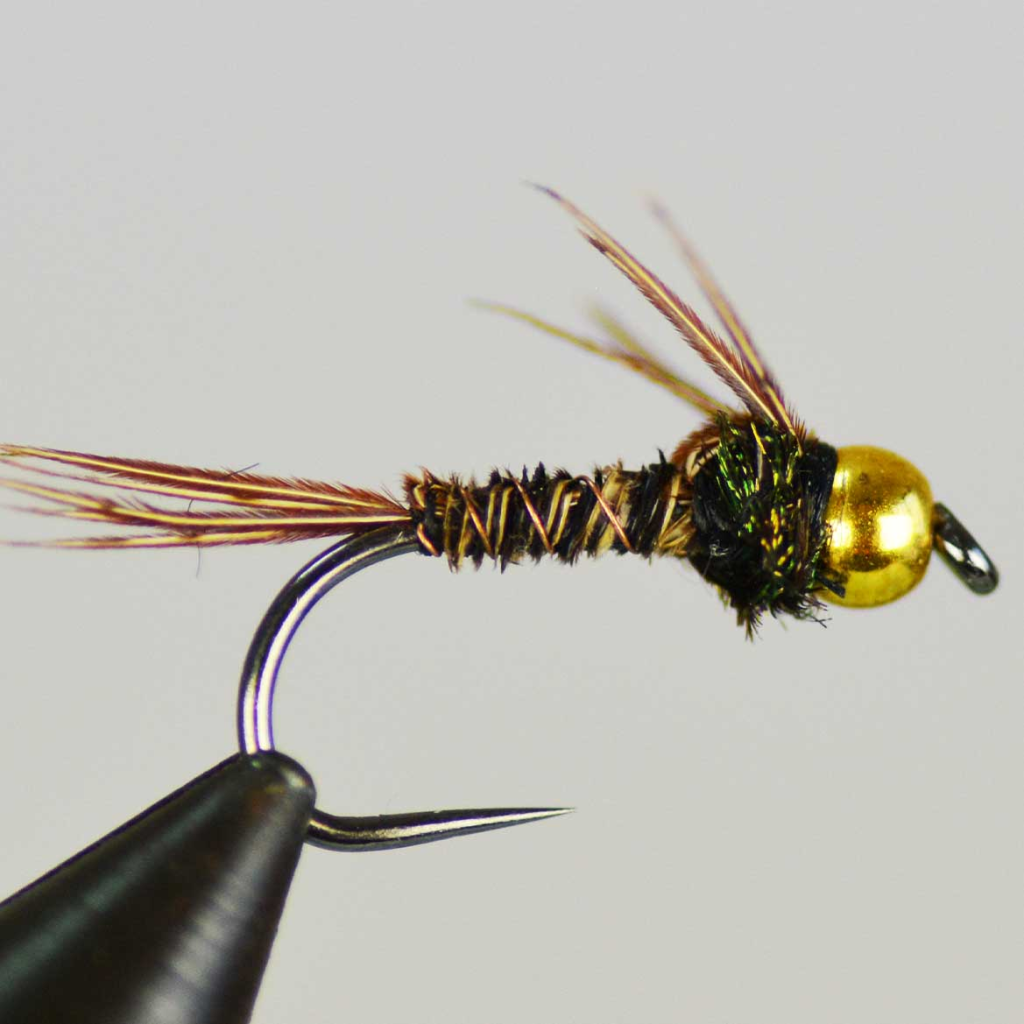 春の定番パターン。ヒラタカゲロウ幼虫を模した万能型で、ハッチ前の魚に効きやすい。
